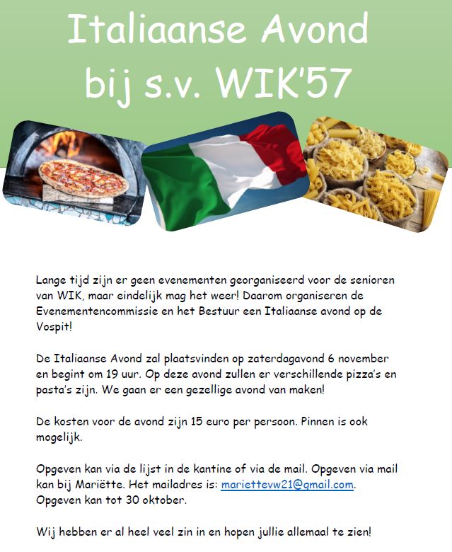 6 november Italiaanse Avond!