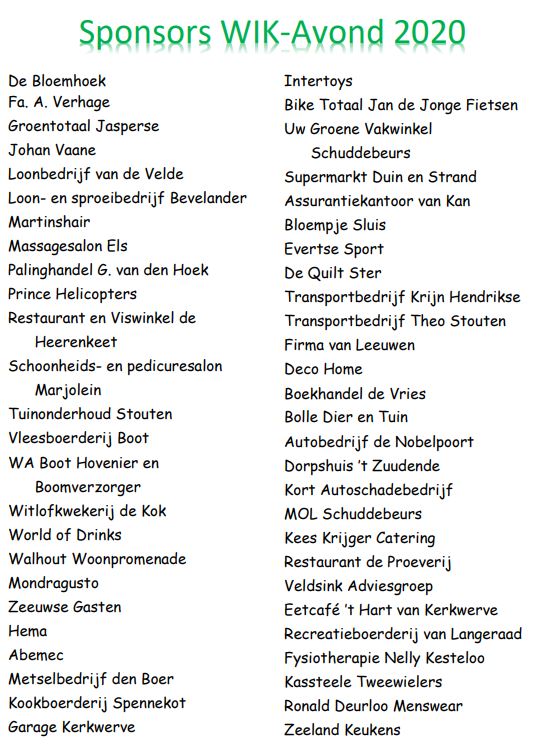 Vanavond is de jaarlijkse Toneel en WIK Feestavond. Deze avond kan niet plaats vinden zonder een groot aantal sponsoren, waarvoor hartelijk dank!